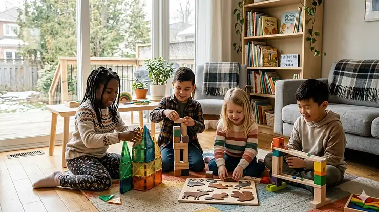 Consider Canadian Seasons Winter in Canada means months of indoor play. Invest in screen-free toys that work well indoors. Summer brings outdoor possibilities, but you still need rainy-day alternatives.